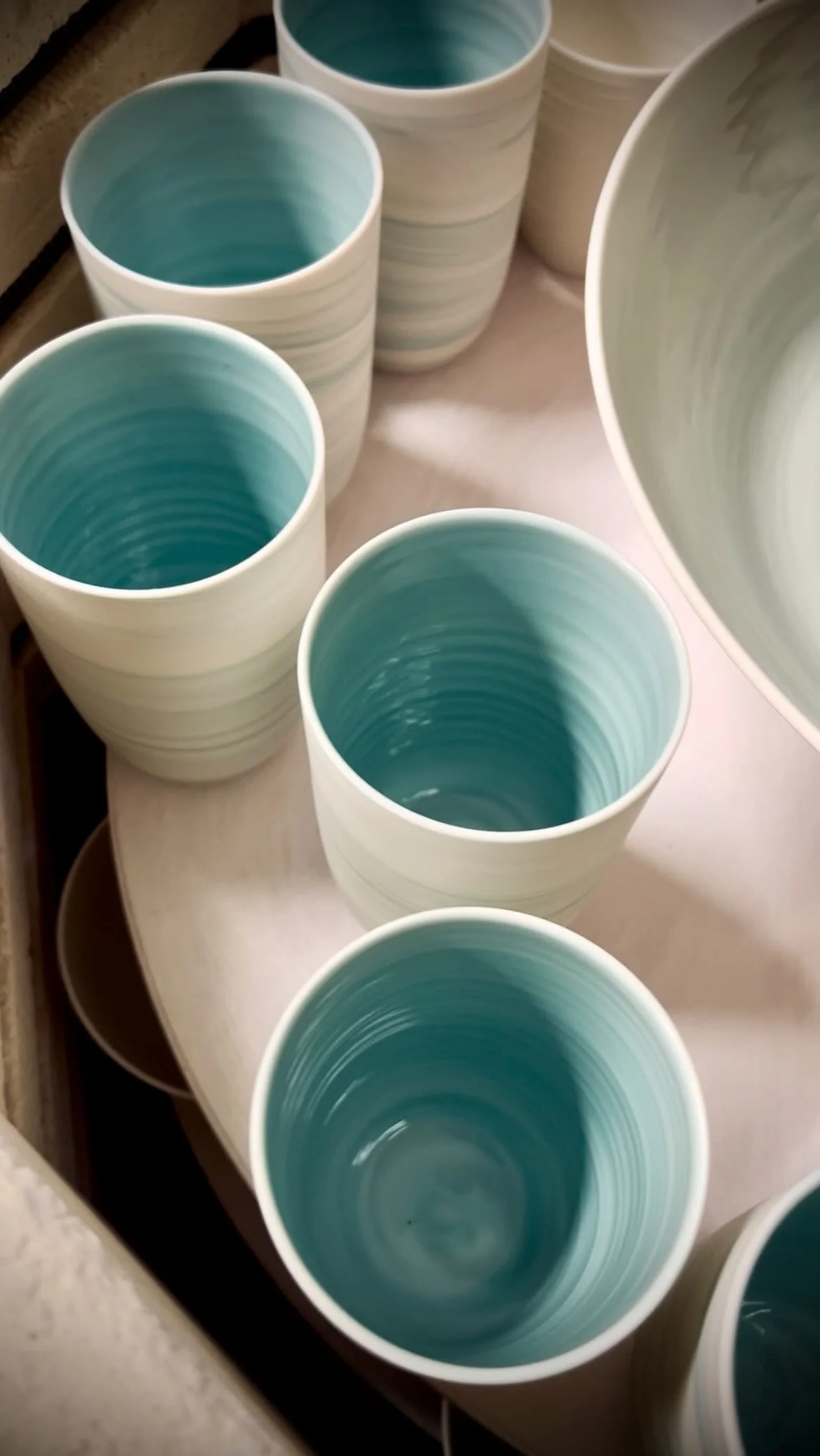 In meiner Weimarer Manufaktur stelle ich freigedrehte, handgefertigte Porzellanartikel zum Wohnen, Leben und Schenken her.
